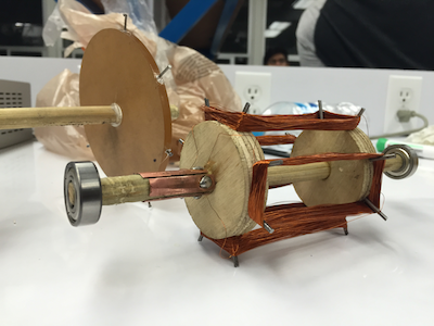 Electric motor created from scratch. Created by a team of 4. Materials used were wood, wire, screws and magnets.